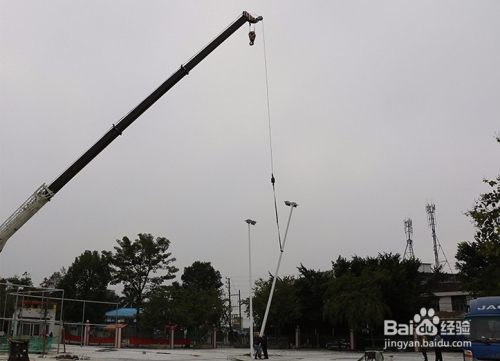 5.立燈桿,可用吊機或人工將燈桿吊起到預埋件安裝位置固定