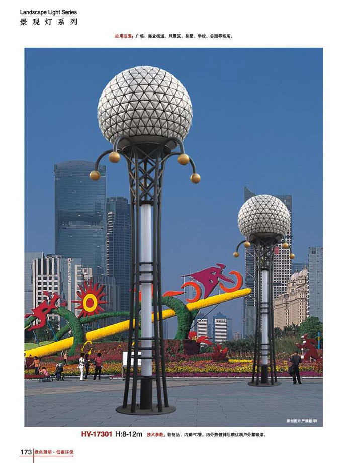 用途:景觀燈適用市政工程、園林亮化工程和公園、開發(fā)區(qū)、別墅區(qū)、廣場等戶外路燈照明工程