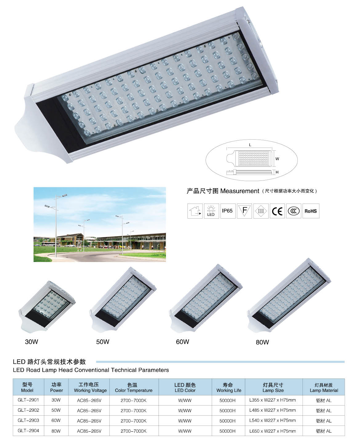 led路燈燈頭技術參數: